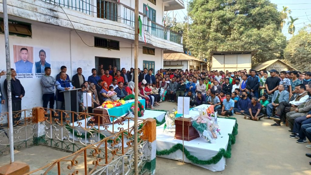 Kamalanagar, January 17, 2023: An official condolence programme was held today for Dg. Mohesh Boran Chakma, MDC, CADC and Dg. Charan Singh Chakma, MDC, CADC at the CADC Secretariat, Kamalanagar. Mortal remains of Dg. Mohesh Boran Chakma and Dg. Charan Singh Chakma were brought at the venue for floral tributes by the councillors, all political parties, NGOs and employees of Chakma Autonomous District Council.