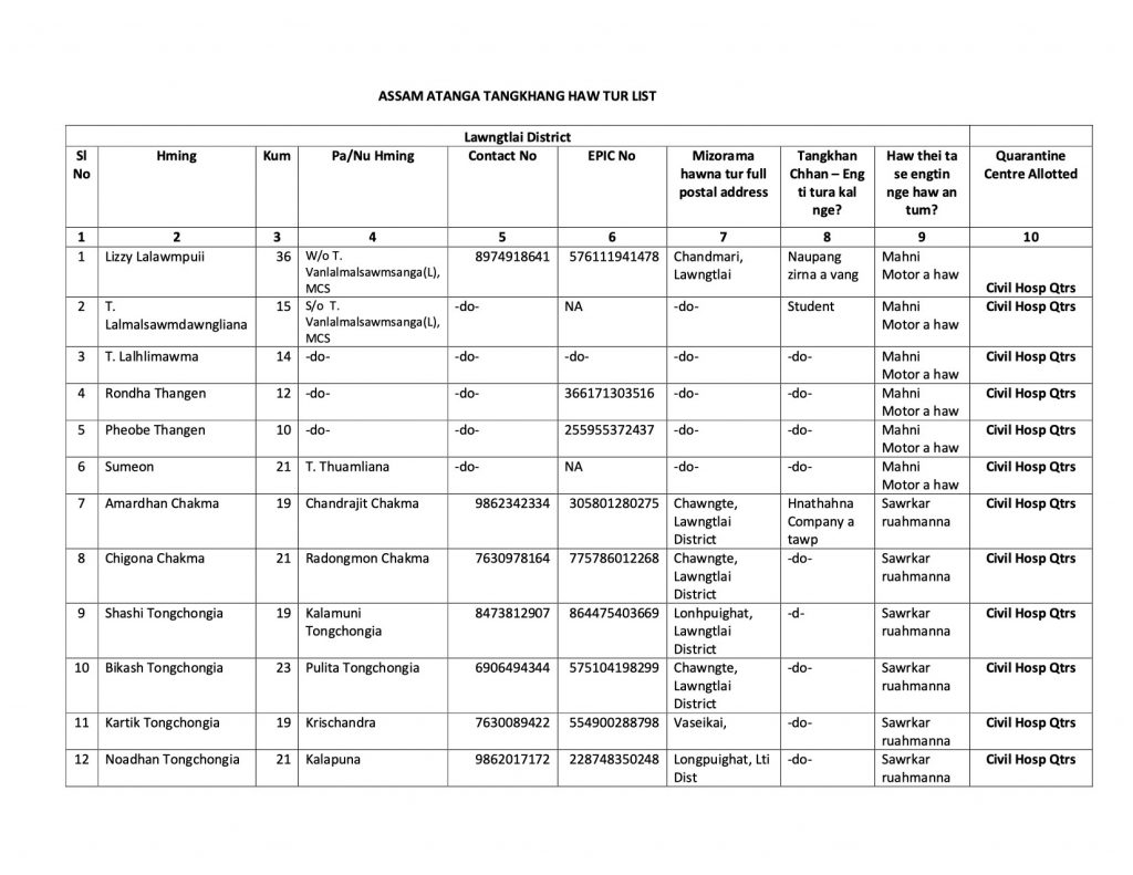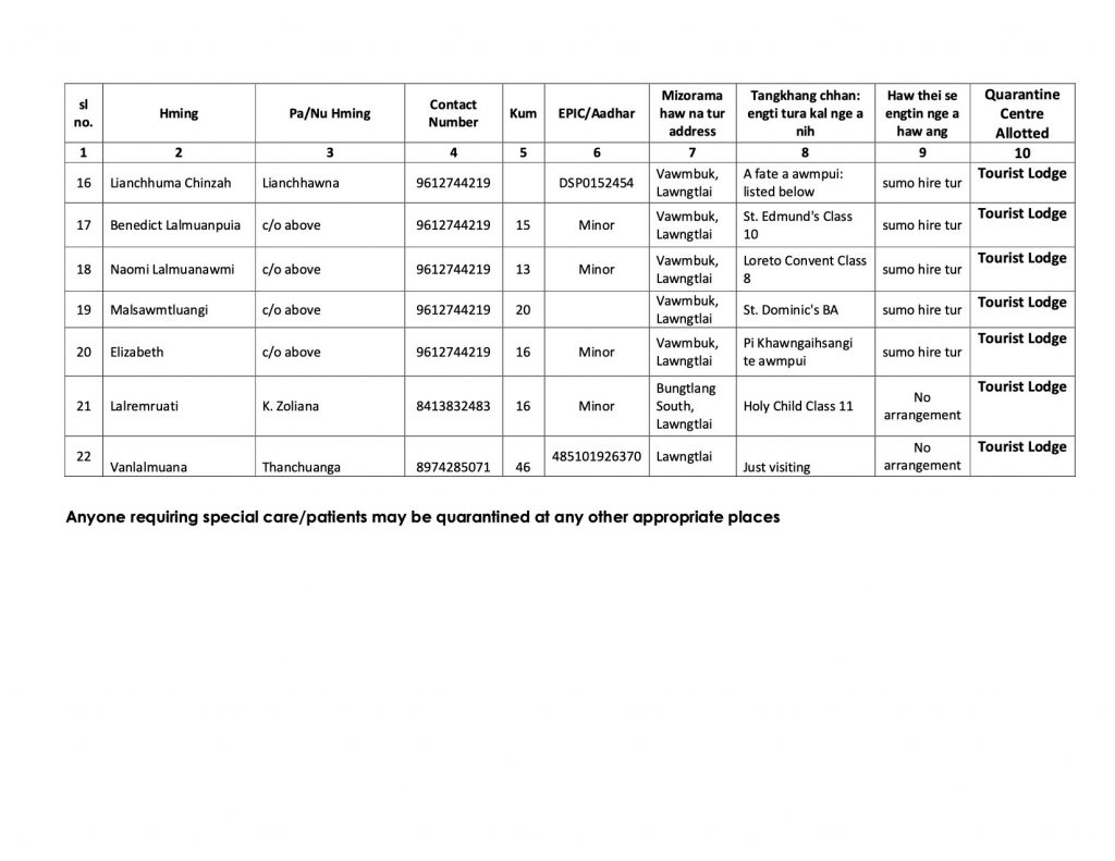 The team was also asked if truck drivers entering Mizoram with essential goods are being tested or just screened. It has been clarified that only screening was done; however to ensure safety the guidelines requires the truck drivers stay inside the truck and return after unloading and have food outside the town/village.