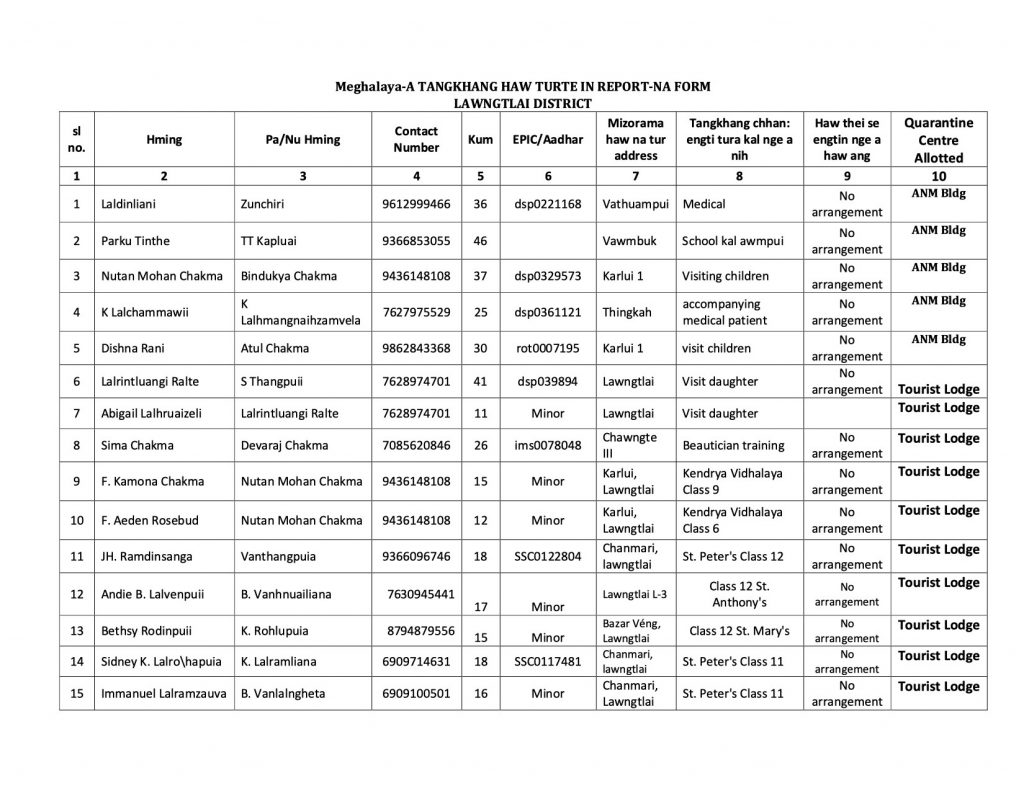 The SDO highlighted the various challenges of the area with respect to fighting the pandemic. He spoke on the very poor health facility in the sub-division and the need to deploy medical personnel at Longpuighat and Parva. The SMO, Chawngte will submit proposal for setting up of PHC at Longpuighat and Parva and for Borapansury PHC, presently run by CADC, to be fully taken up by the state government.