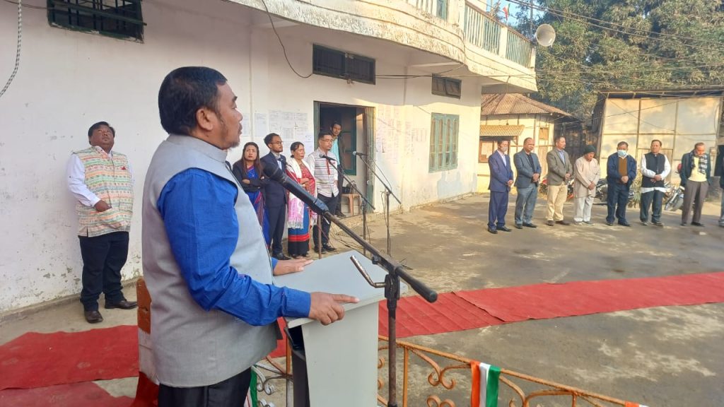 Kamalanagar, January 26, 2023: Dg. Kali Kumar Tongchangya, Chairman, Chakma Autonomous District Council unfurled National Flag on the occasion of celebration of 74th Republic Day of India, organized in the premises of CADC Secretariat, Kamalanagar.